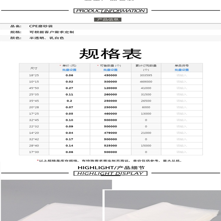 cpe磨砂袋批发价格