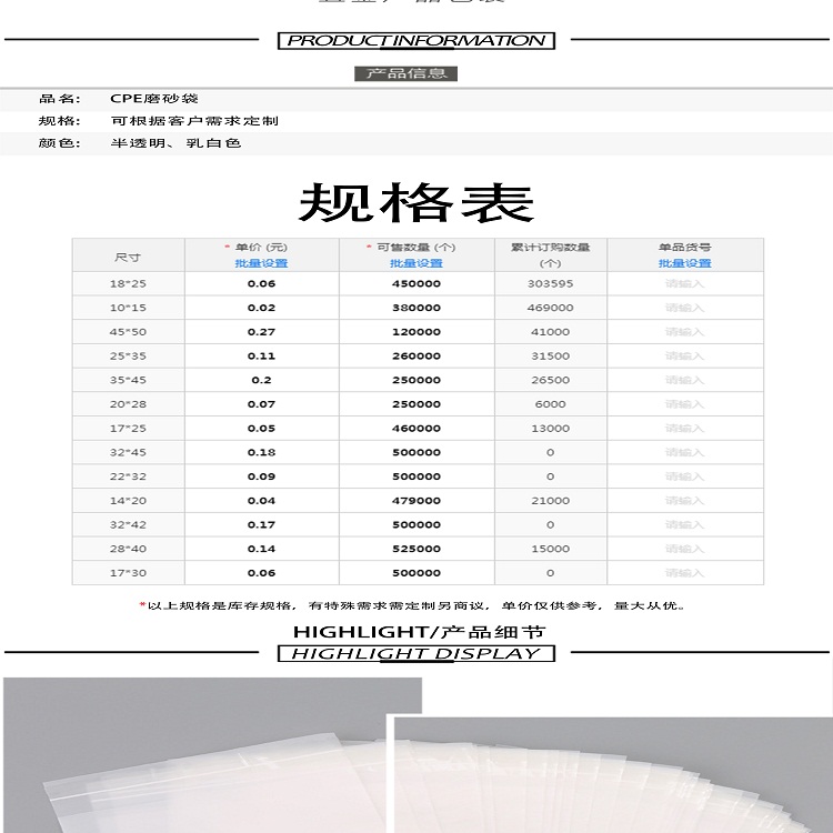 CPE磨砂袋
